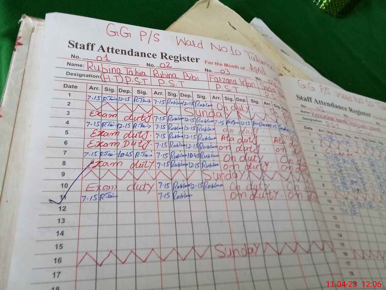 | Leave | Duty | Absent | Maternity | Medical | Ex- Pak |