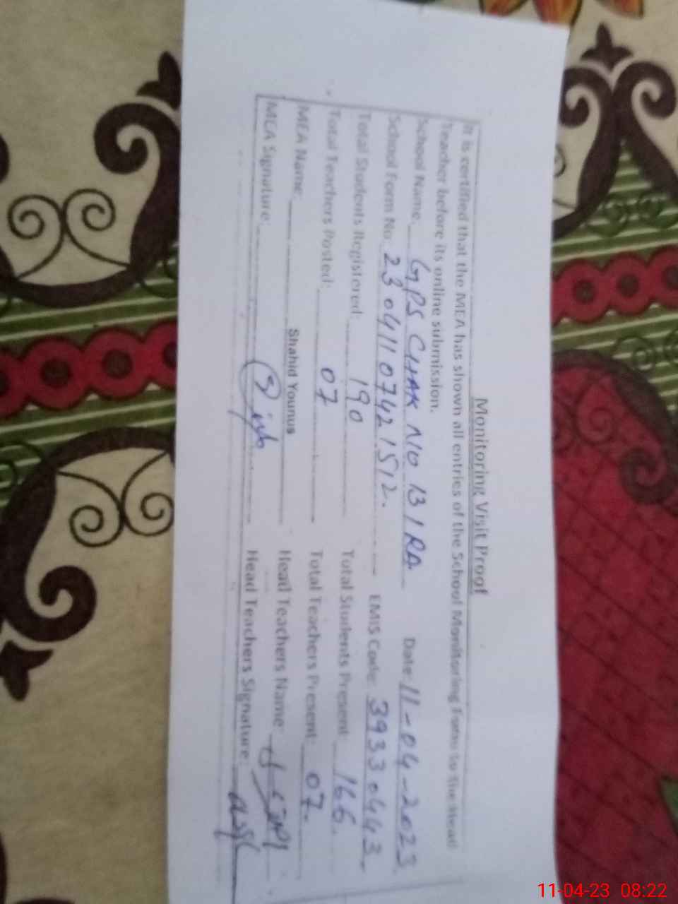 | EMIS Code: 39330443 | Name of School: GPS CHAK NO.13/1-RA | |||