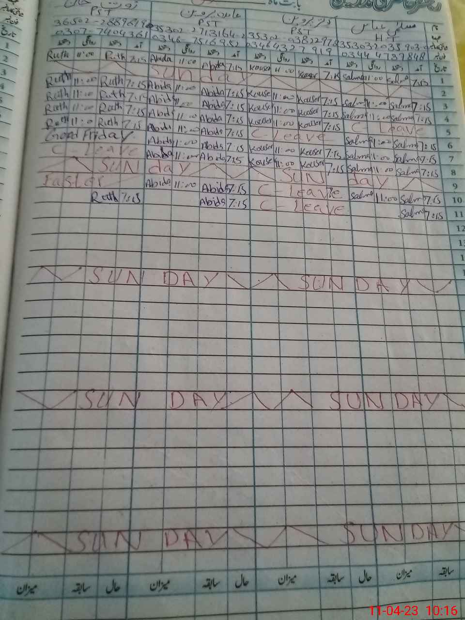 | Leave | Duty | Absent | Maternity | Medical | Ex- Pak |