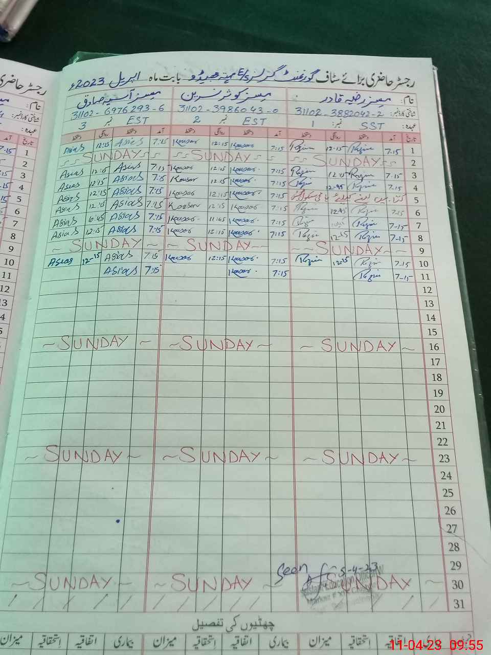 | CNIC | Full Name | Designation | R/C | Absence During Last Calender Month |