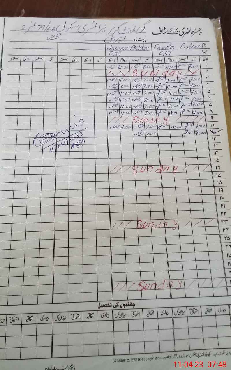 | Name: SA**** NA**** Designation: (School Headmaster's/Headmistress's) PST Phone/Cell Number: 03**** |
