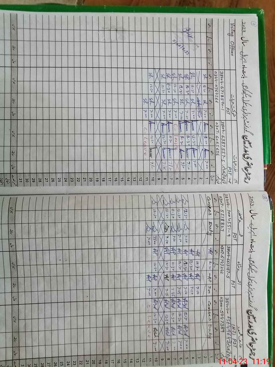 | Leave | Duty | Absent | Maternity | Medical | Ex- Pak |