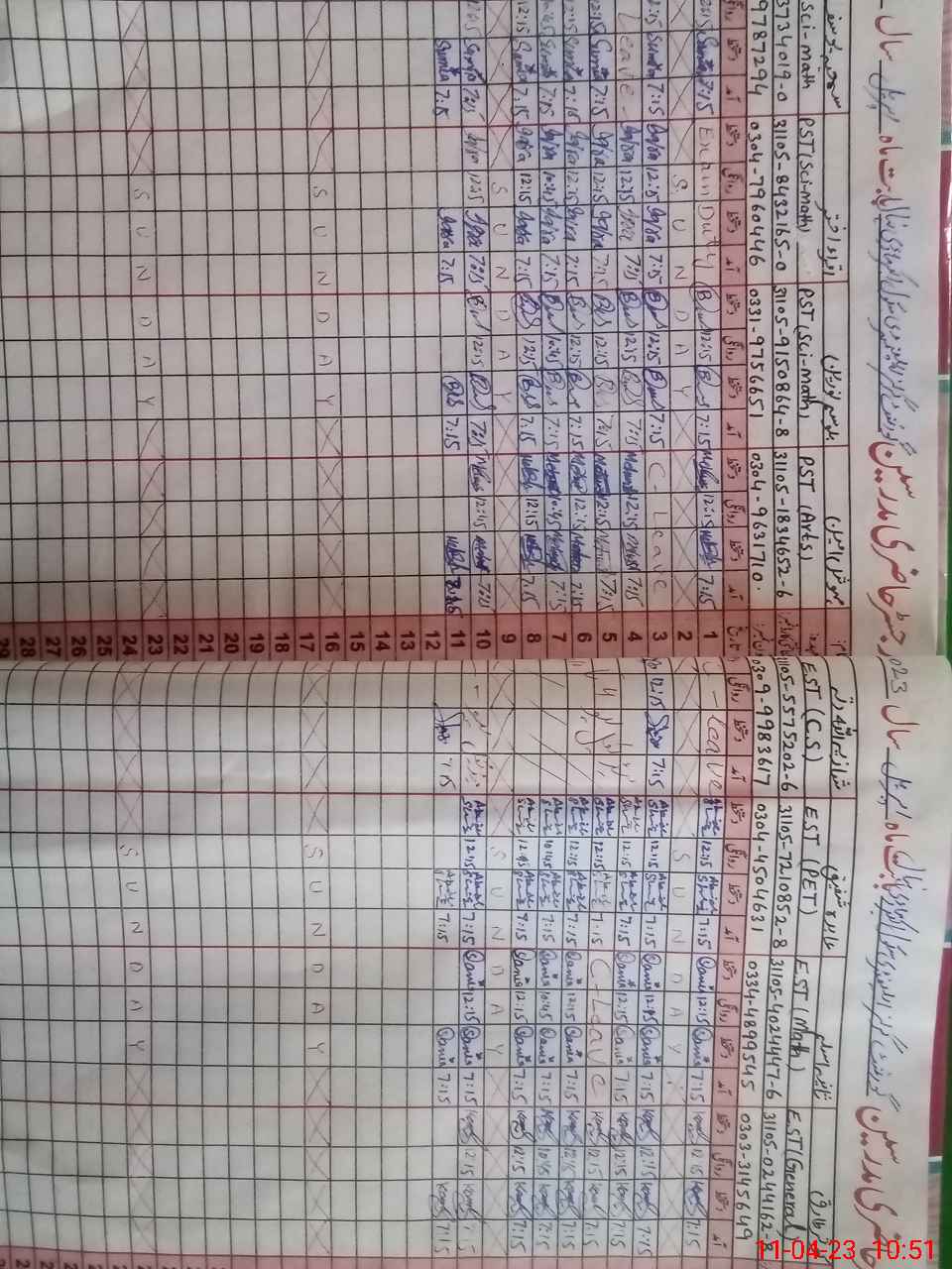 | CNIC | Full Name | Designation | R/C | Absence During Last Calender Month |