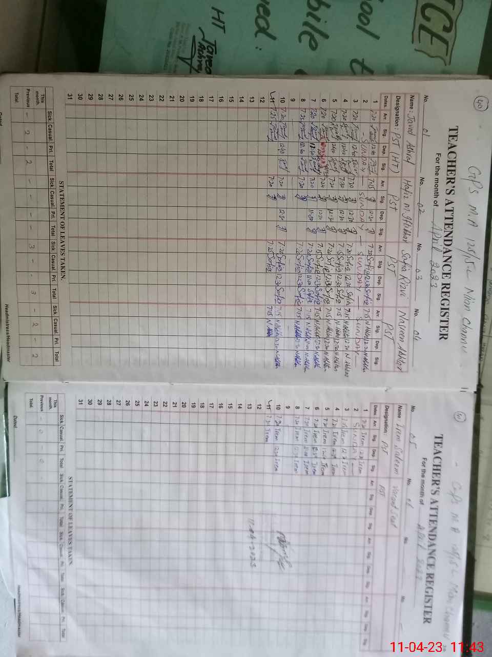 | Name: MU**** Sh**** Designation: (School Headmaster's/Headmistress's) PST Phone/Cell Number: 03**** |