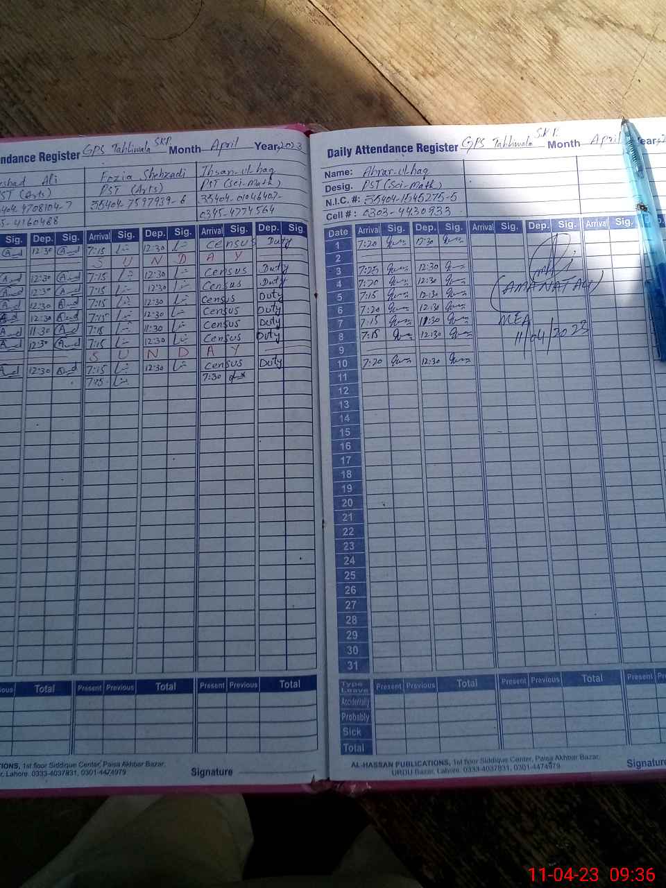 | Name: Ar**** Al**** Designation: (School Headmaster's/Headmistress's) PST Phone/Cell Number: 03**** |