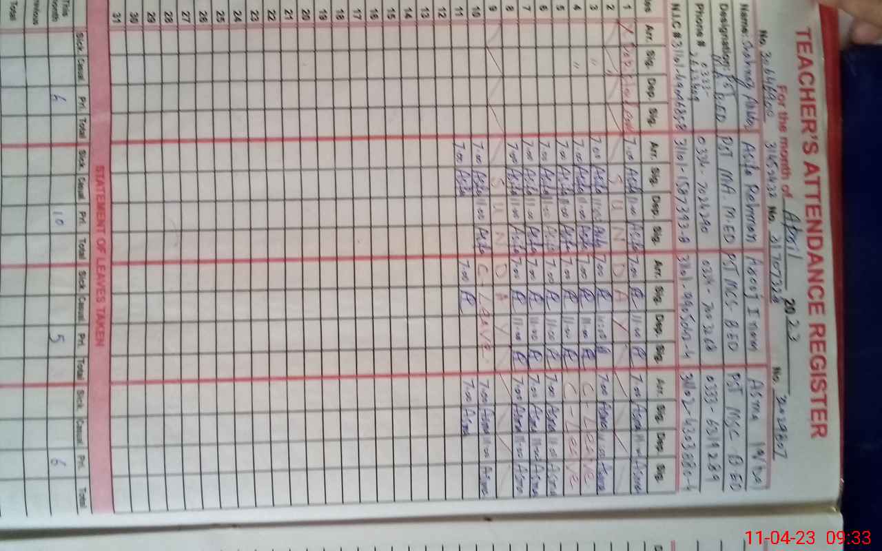 | Name: Ar**** In**** Designation: (School Headmaster's/Headmistress's) PST Phone/Cell Number: 03**** |