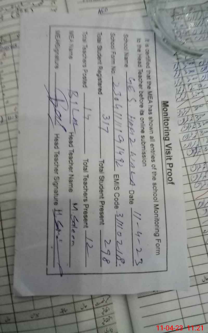 | EMIS Code: 31110218 | Name of School: GES HAFIZ WALA | |||
