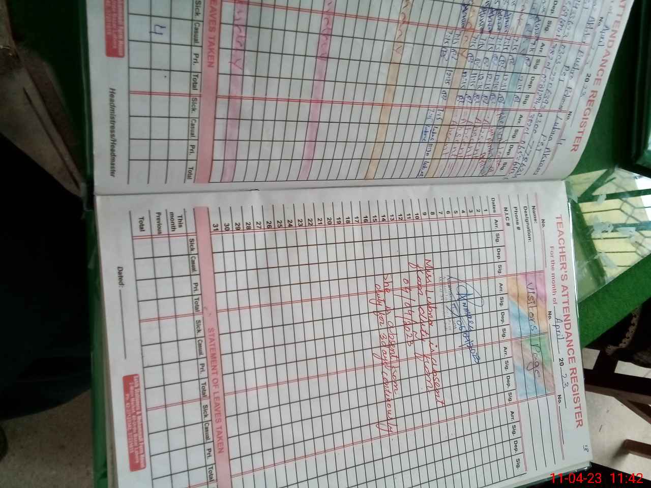 | Attendance Register | Head Teacher | MEA with School | Visit Proof |