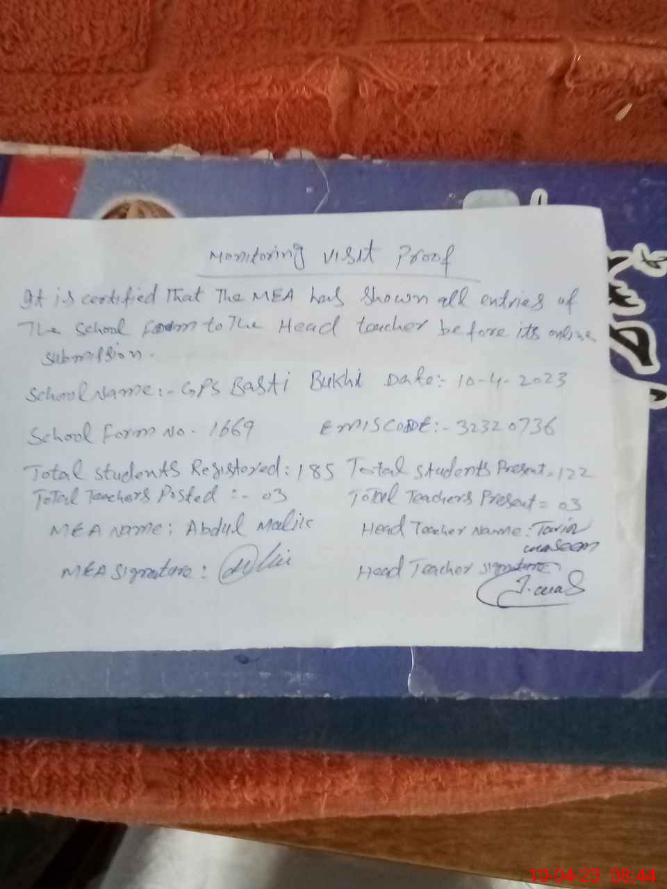 | EMIS Code: 32320736 | Name of School: GPS BASTI BUKHI | |||
