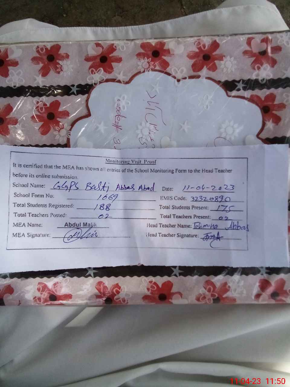 | EMIS Code: 32320890 | Name of School: GGPS BASTI ABBAS ABAD | |||