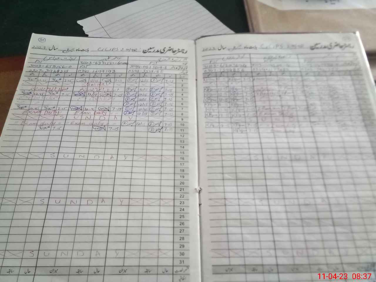 | 31**** | Za**** Pa**** | PST | Regular | 0 | 0 | 0 | 0 | 0 | 0 | 0 | 0 | 0 | Exam Duty |