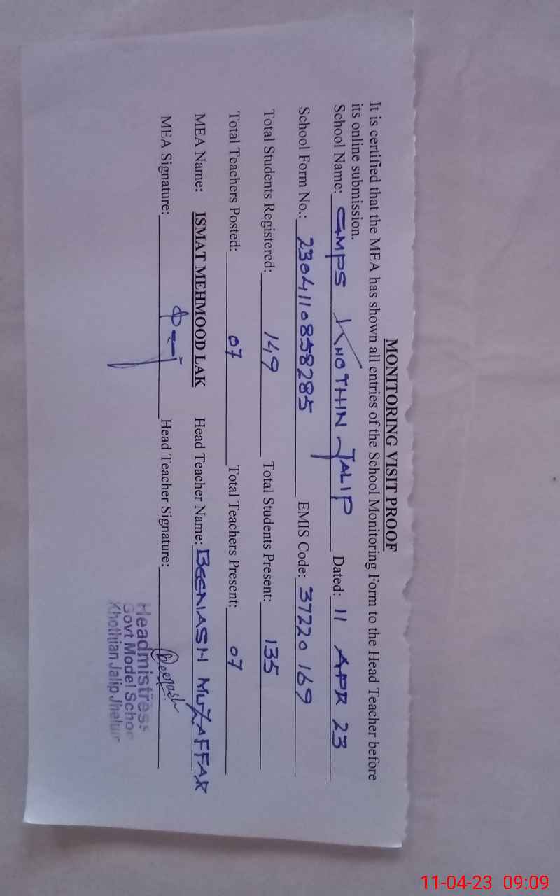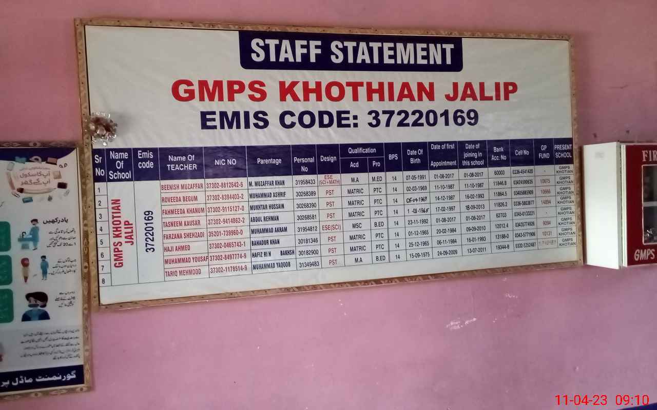 | EMIS Code: 37220169 | Name of School: GGMPS KHOTHIAN JALIP | |||
