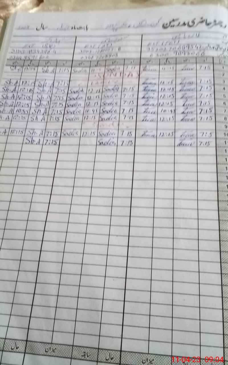 | CNIC | Full Name | Designation | R/C | Absence During Last Calender Month |