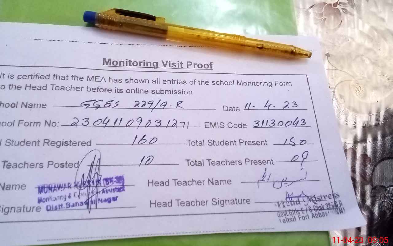 | Attendance Register | Head Teacher | MEA with School | Visit Proof |