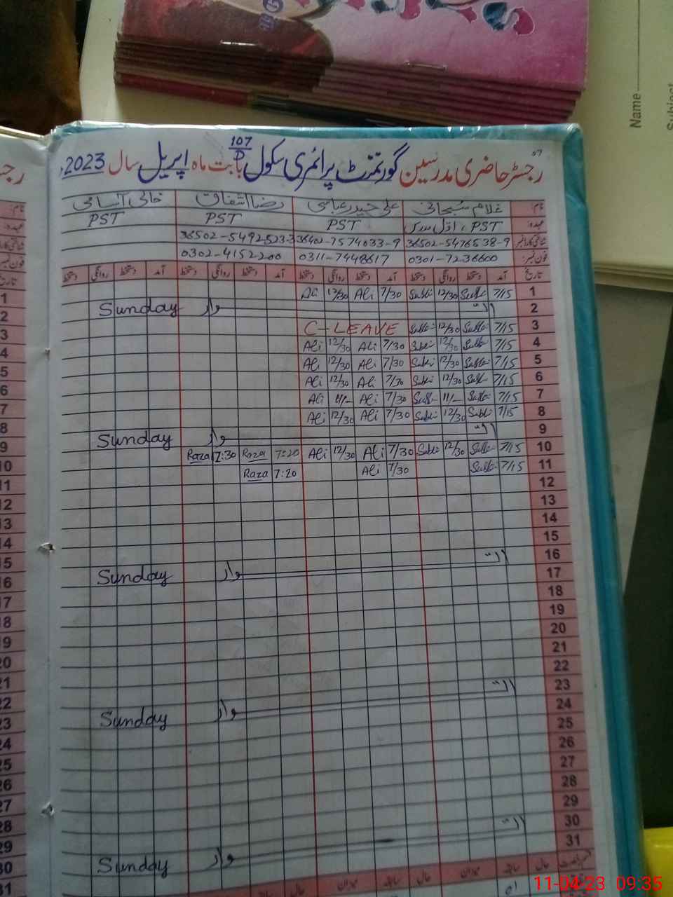 | Name: Ra**** Is**** Designation: (School Headmaster's/Headmistress's) PST (Sci) Phone/Cell Number: 03**** |