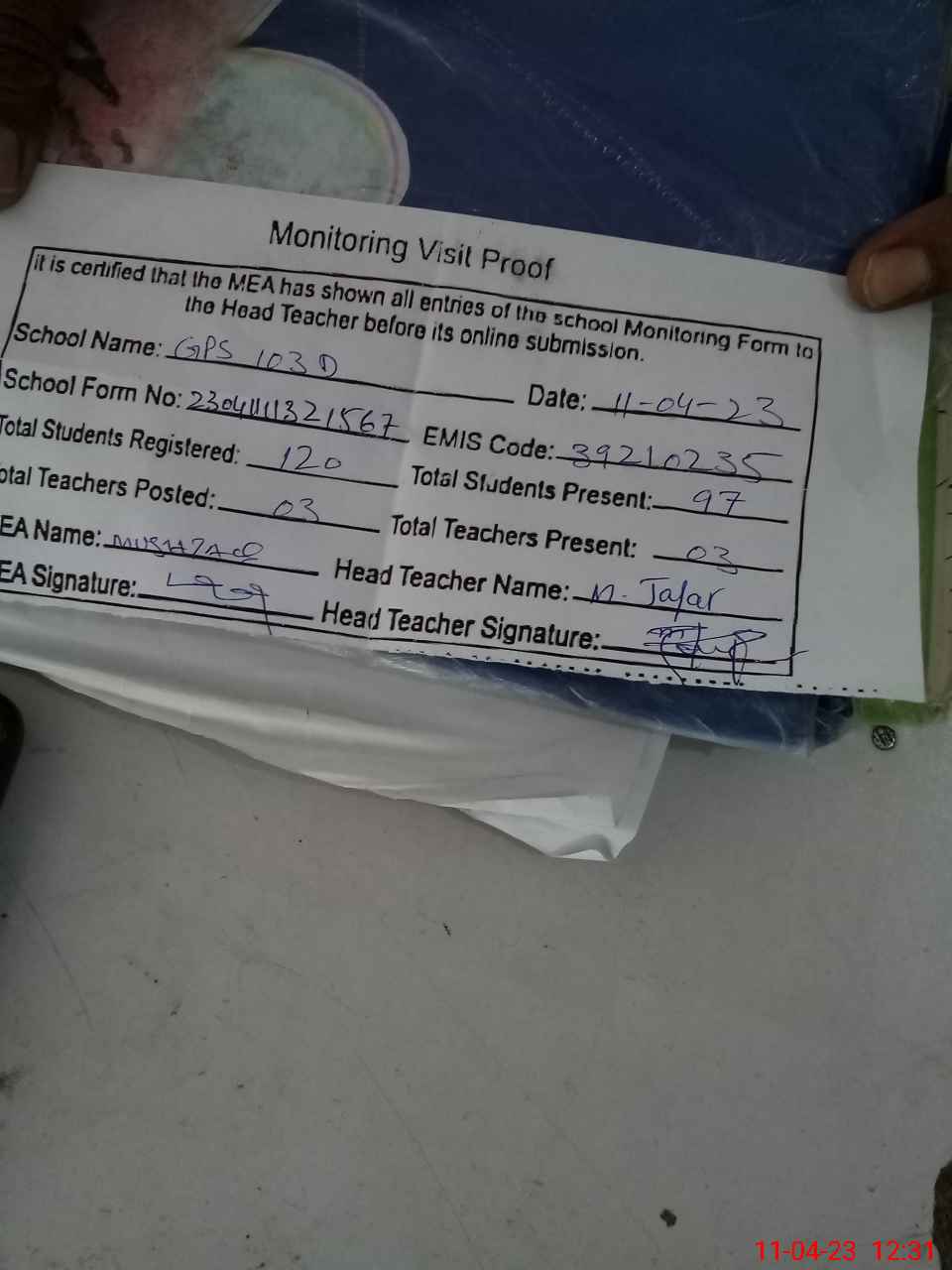 | EMIS Code: 39210235 | Name of School: GPS CHAK NO. 103 D | |||