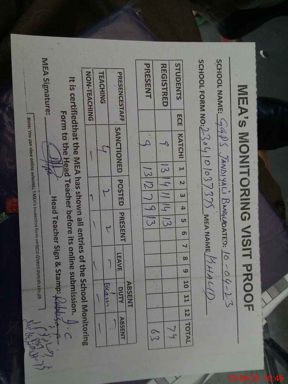 | EMIS Code: 36430517 | Name of School: GGPS JANDIYALI BANGLA , 56/15-L MIAN CHANNU | |||