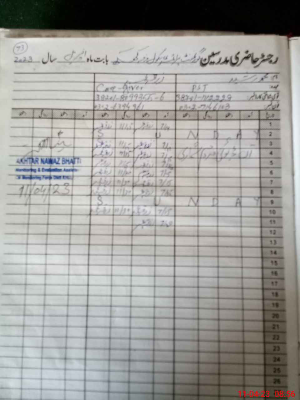 | Name: Mu**** Af**** Designation: (School Headmaster's/Headmistress's) PST Phone/Cell Number: 03**** |