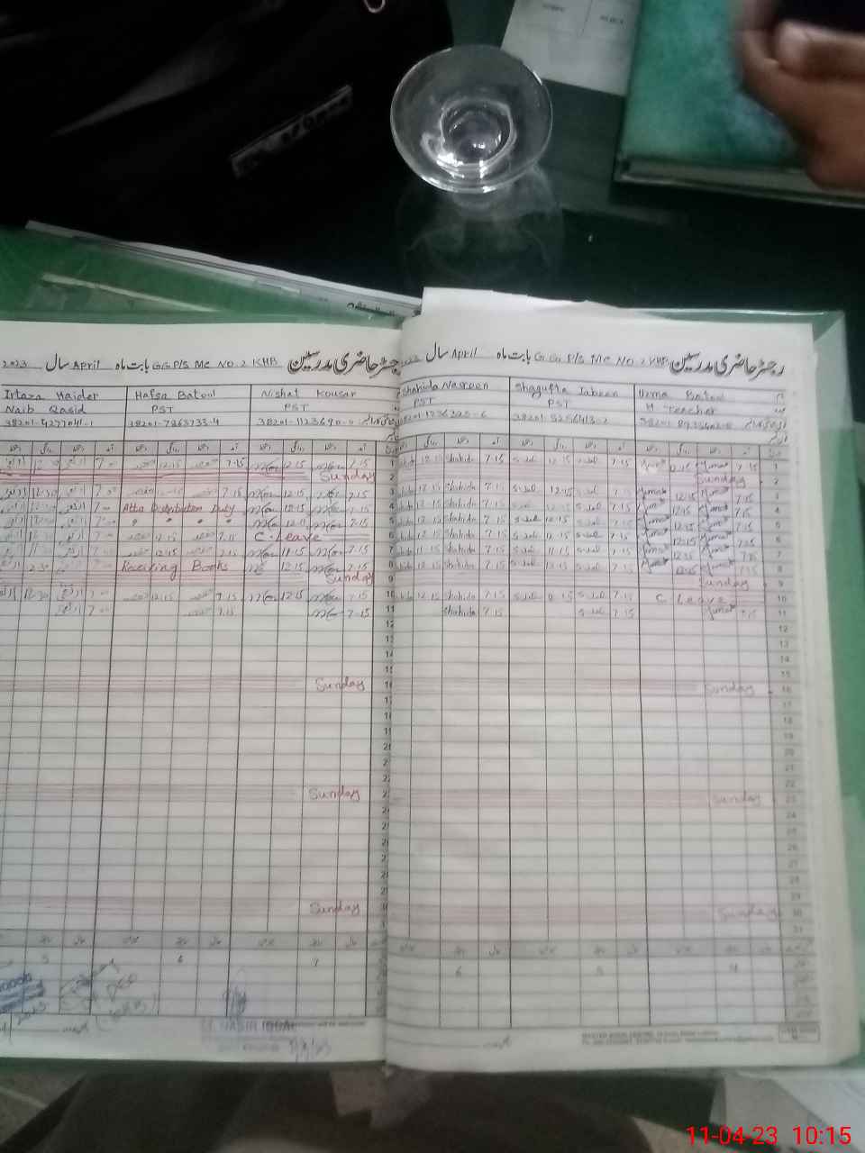 | CNIC | Full Name | Designation | R/C | Absence During Last Calender Month |