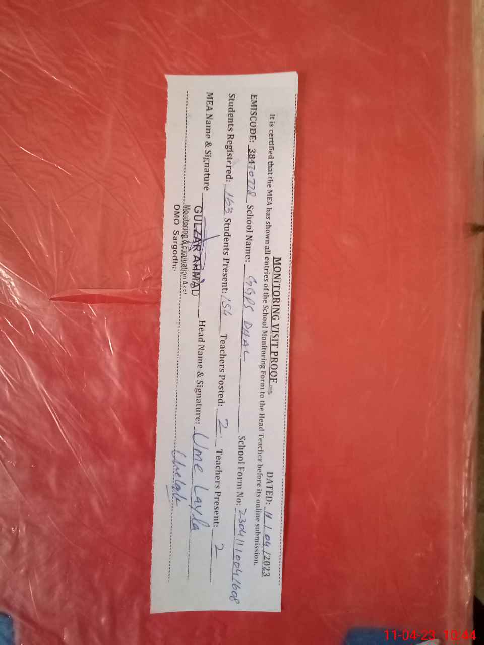| Certified that this School was Inspected by the Undersigned MEA/DMO Today and the Information Stated Above is as Per Record. | |||||