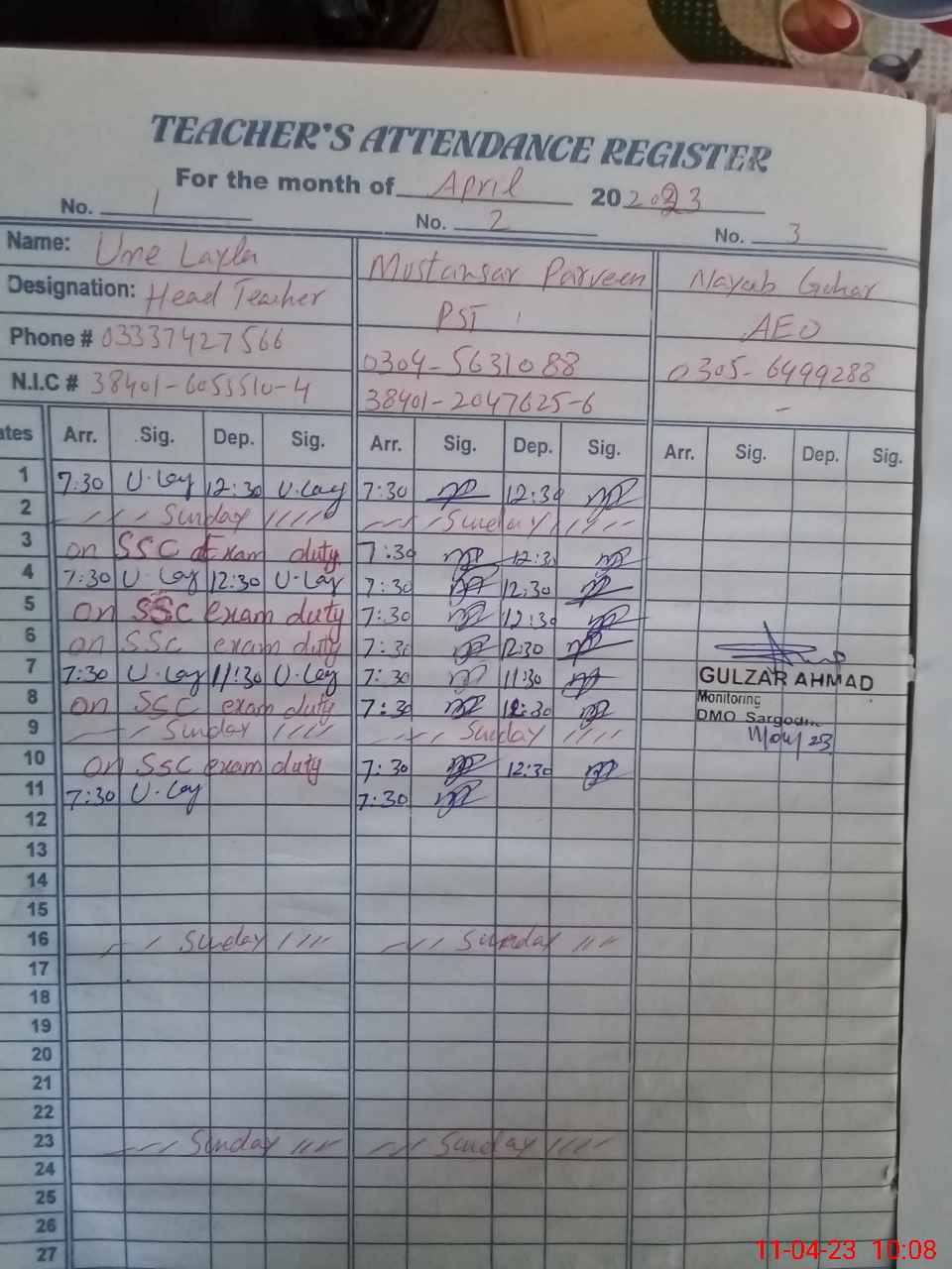 | Name: UM**** LA**** Designation: (School Headmaster's/Headmistress's) PST Phone/Cell Number: 03**** |