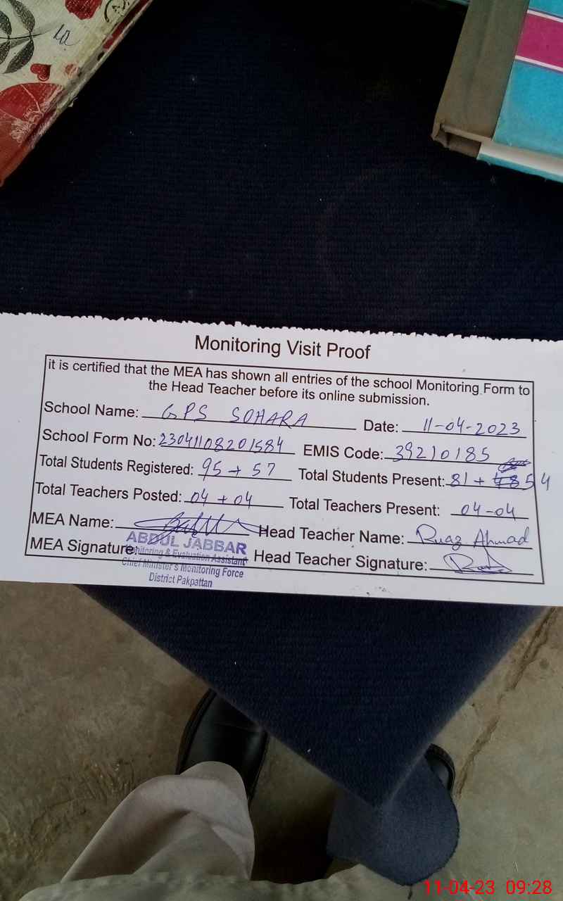 | EMIS Code: 39210185 | Name of School: GPS SOHARA | |||