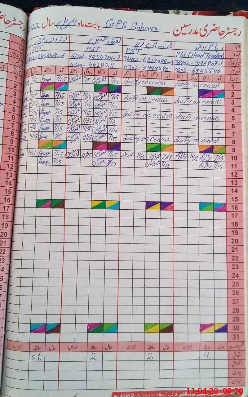 | Name: RI**** AH**** Designation: (School Headmaster's/Headmistress's) PST Phone/Cell Number: 03**** |