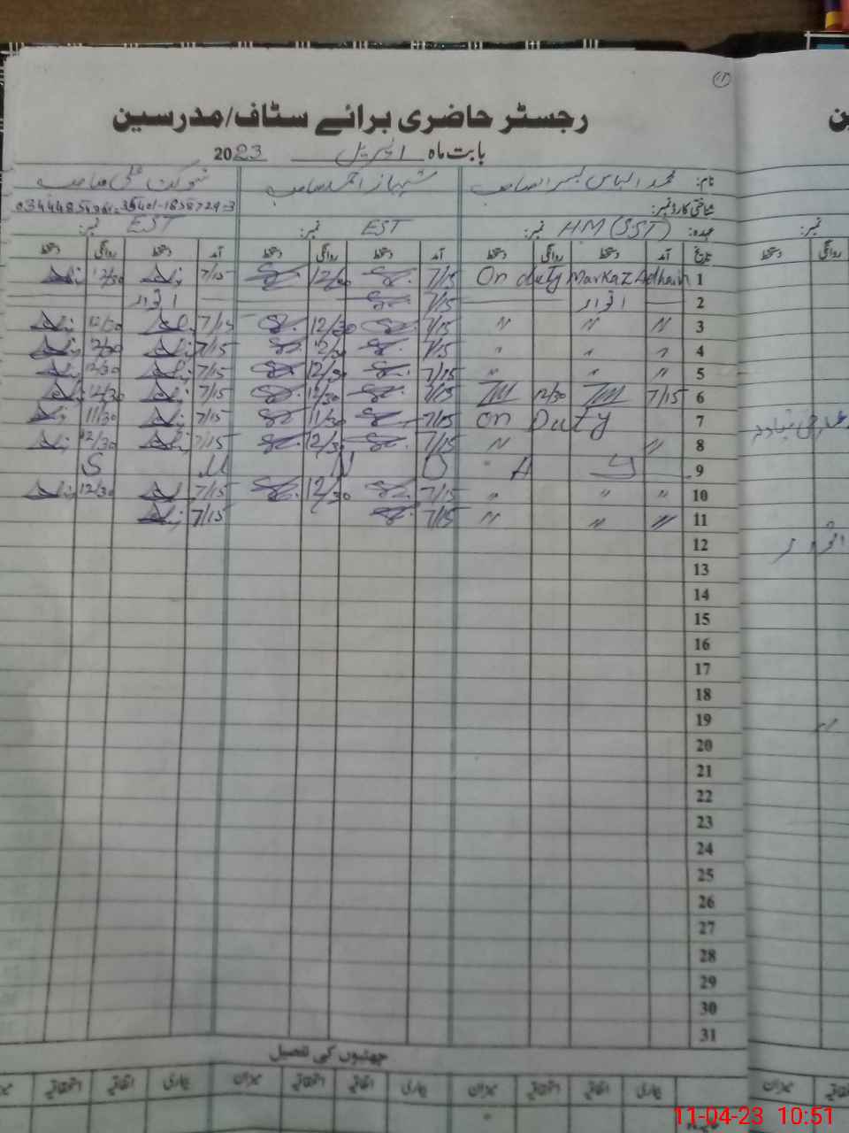 | Name: Mu**** Il**** Designation: (School Headmaster's/Headmistress's) SST (GEN) Phone/Cell Number: 03**** |