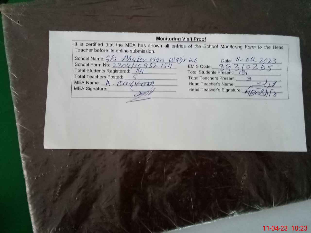 | EMIS Code: 39310265 | Name of School: GPS PHULER WAN WAZIR KE | |||