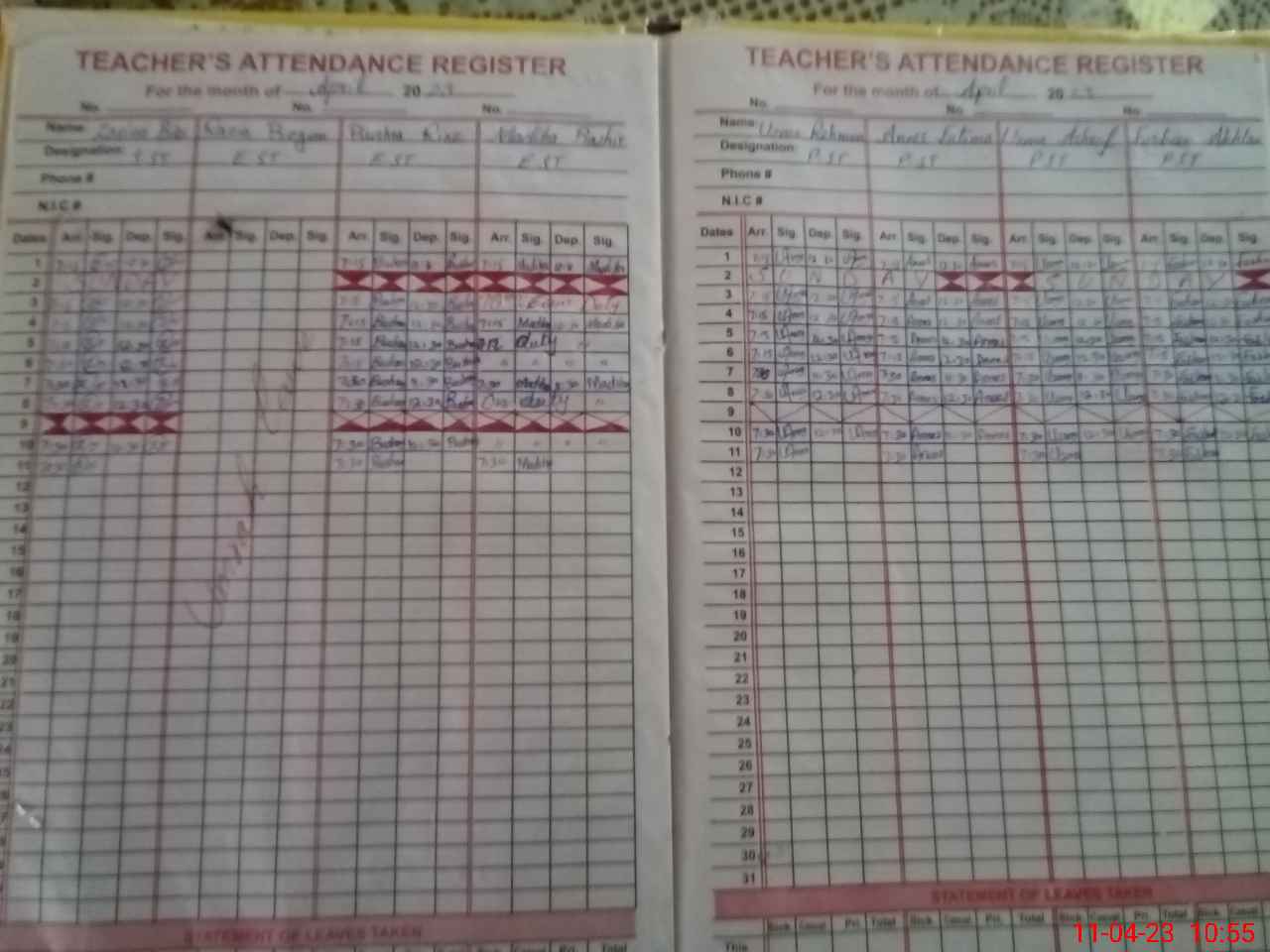 | CNIC | Full Name | Designation | R/C | Absence During Last Calender Month |