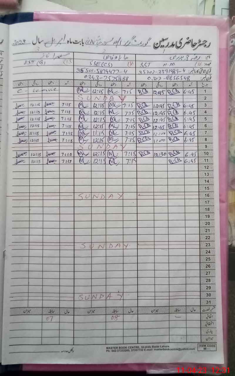 | CNIC | Full Name | Designation | R/C | Absence During Last Calender Month |
