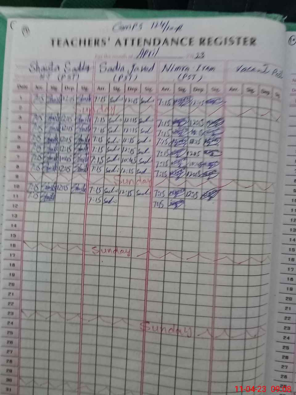 | CNIC | Full Name | Designation | R/C | Absence During Last Calender Month |