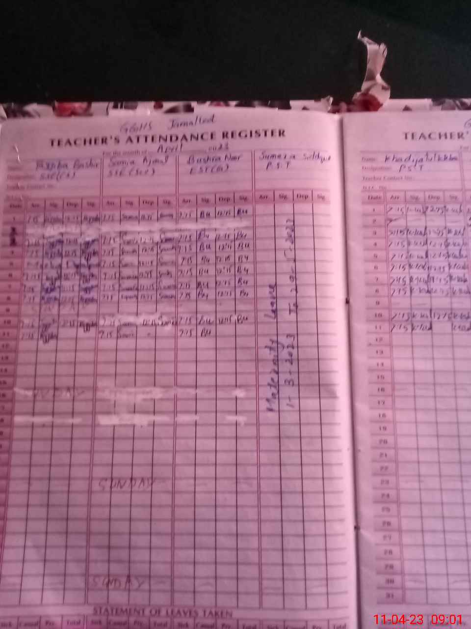 | 35**** | Su**** Si**** | PST | Regular | 31 | 0 | 0 | 31 | 0 | 0 | 0 | 0 | 0 | Maternity |
