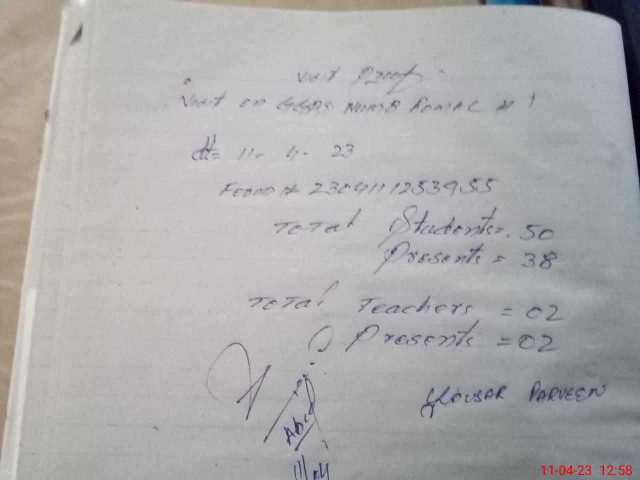 | Attendance Register | Head Teacher | MEA with School | Visit Proof |