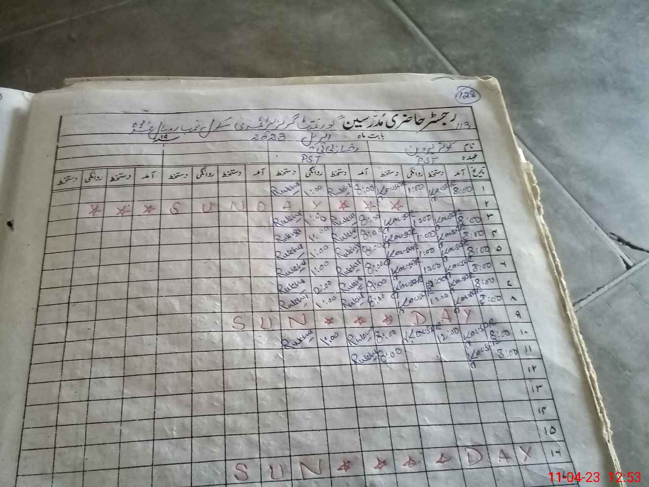 | CNIC | Full Name | Designation | R/C | Absence During Last Calender Month |