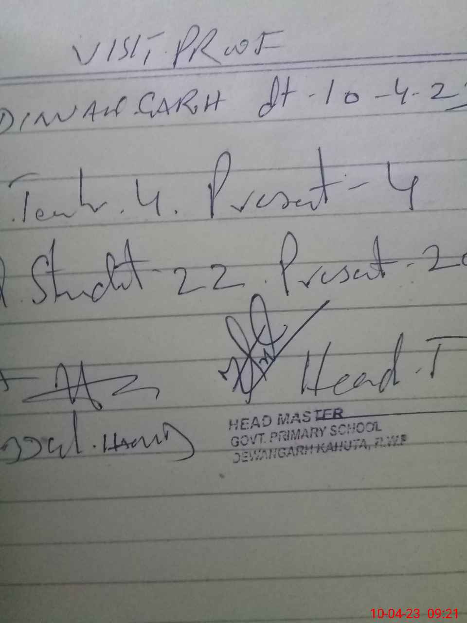 | Attendance Register | Head Teacher | MEA with School | Visit Proof |
