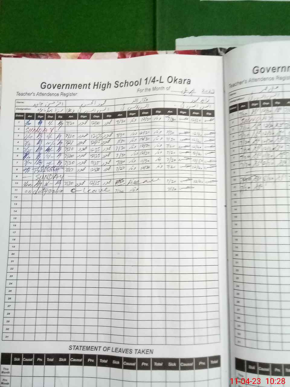 | Leave | Duty | Absent | Maternity | Medical | Ex- Pak |