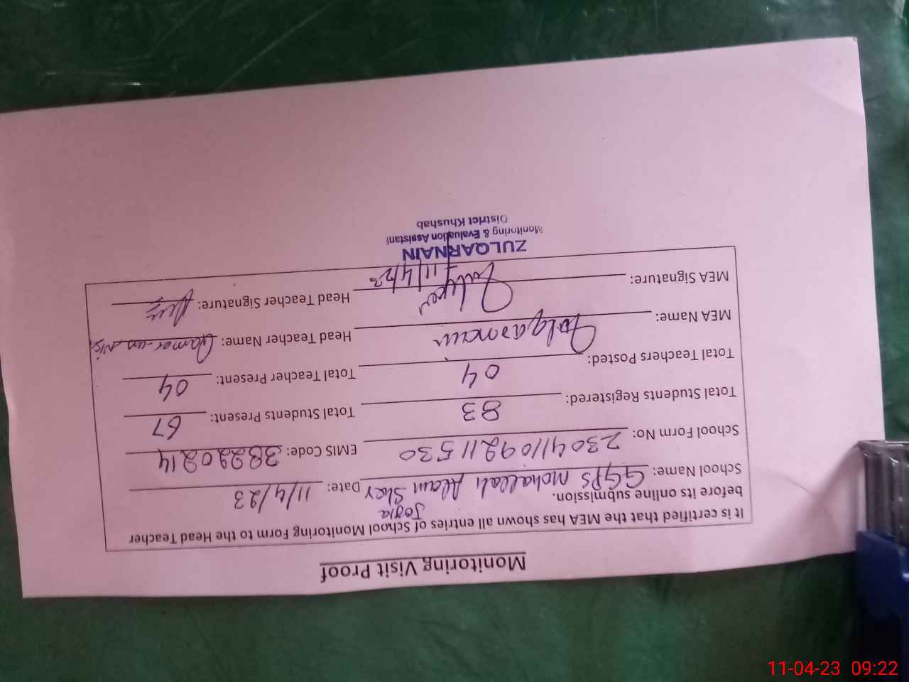 | EMIS Code: 38220214 | Name of School: GGPS MOHALLA ALAM SHER JOYIA | |||