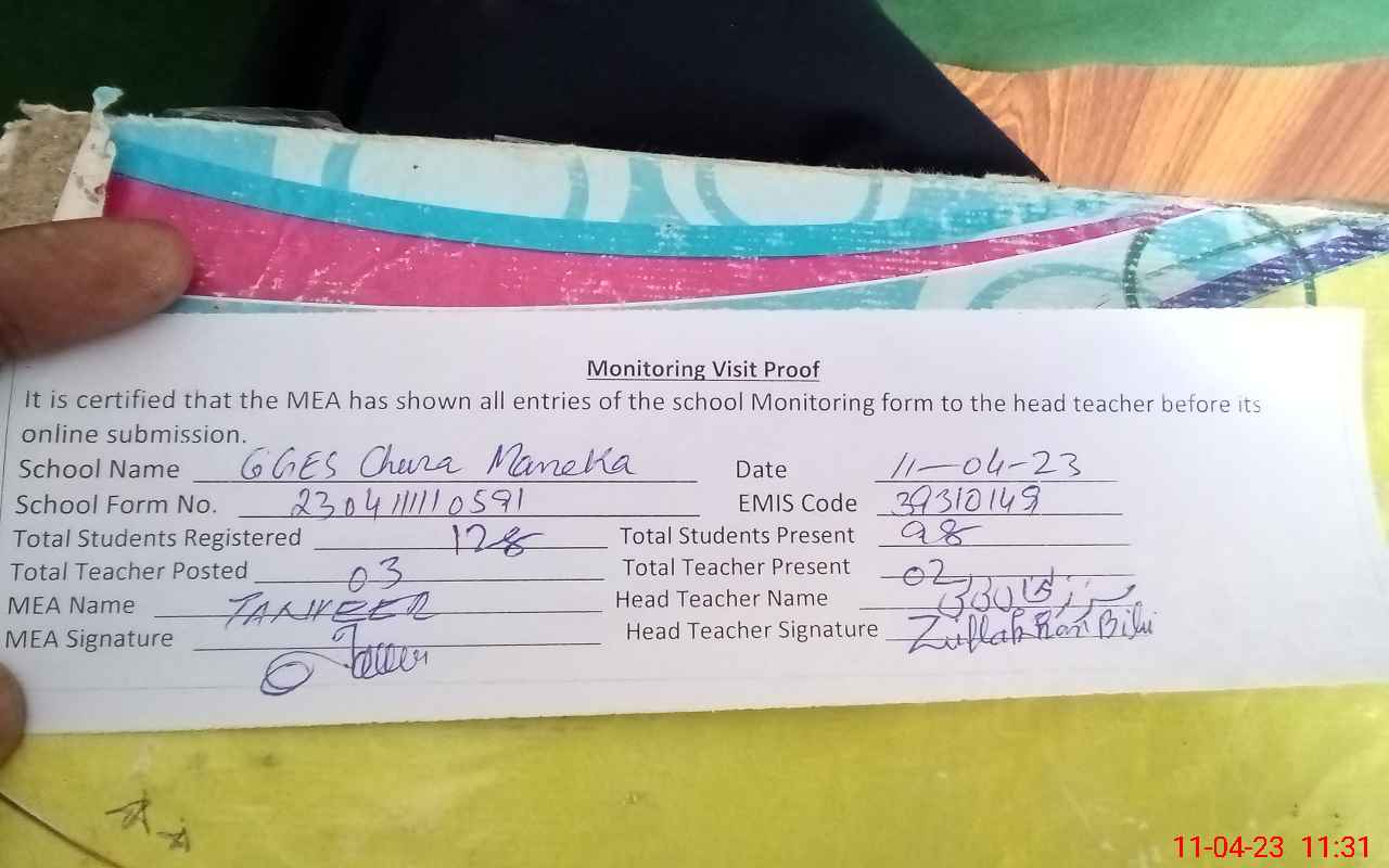 | EMIS Code: 39310149 | Name of School: GGES CHURA MANEKA | |||
