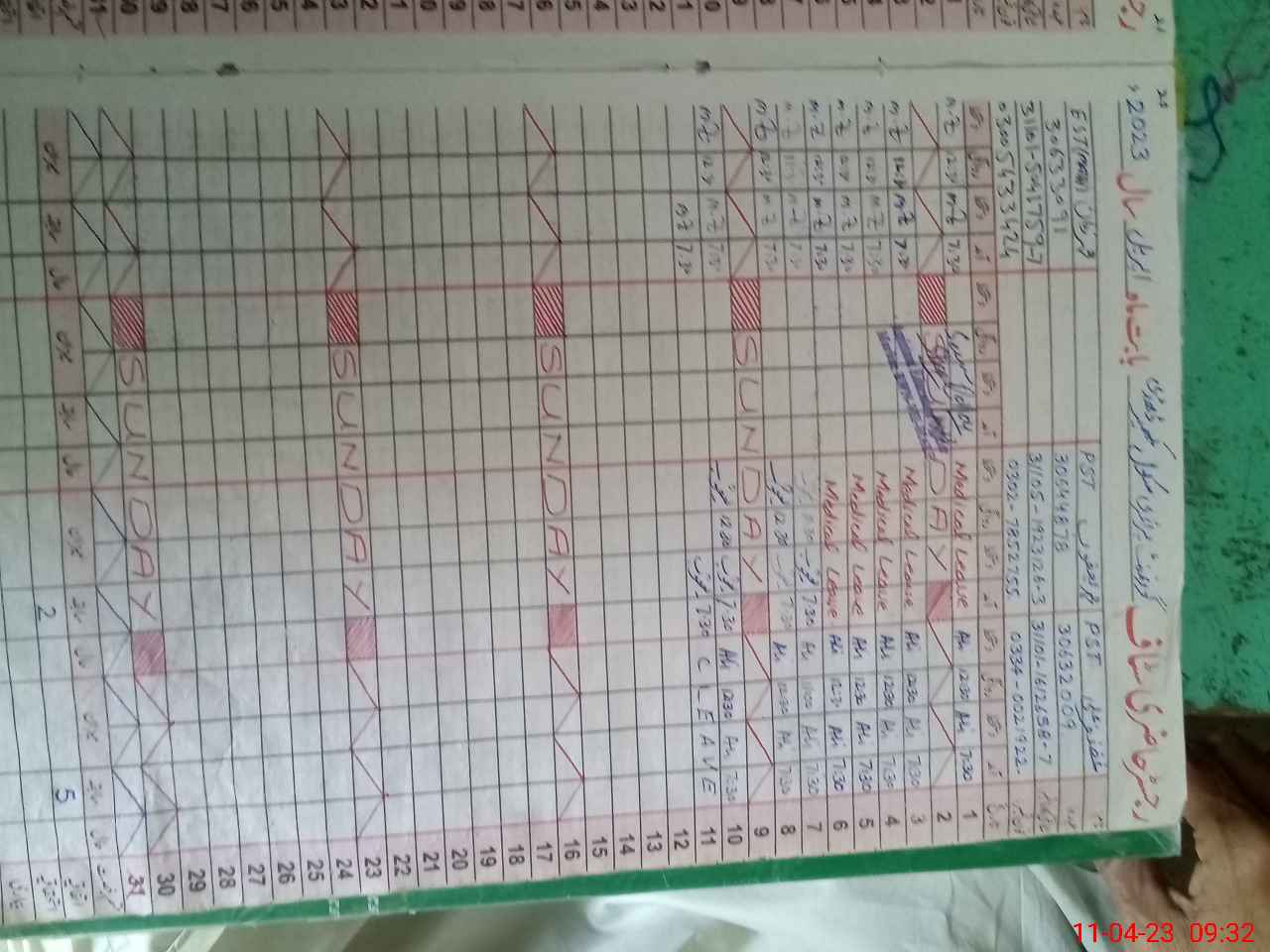 | Leave | Duty | Absent | Maternity | Medical | Ex- Pak |