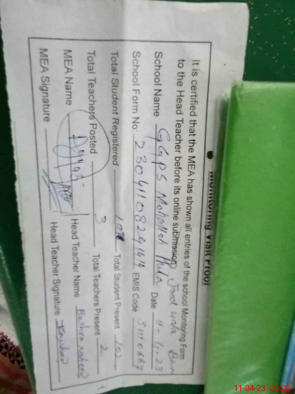 | EMIS Code: 31110667 | Name of School: GGPS MOHALLAH PHULARWAN | |||