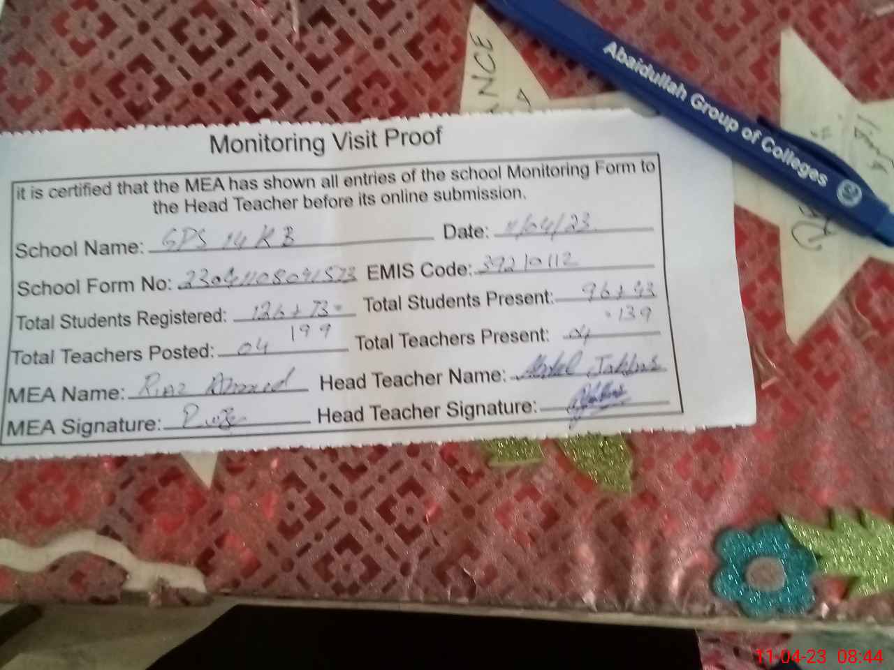 | EMIS Code: 39210112 | Name of School: GPS 14 KB P.O KALYANA | |||