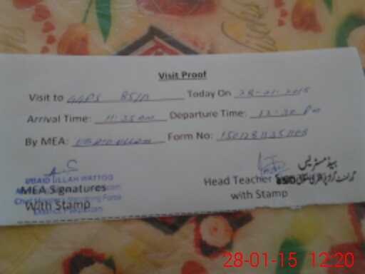 | Attendance Register | Head Teacher | MEA with School | Visit Proof |