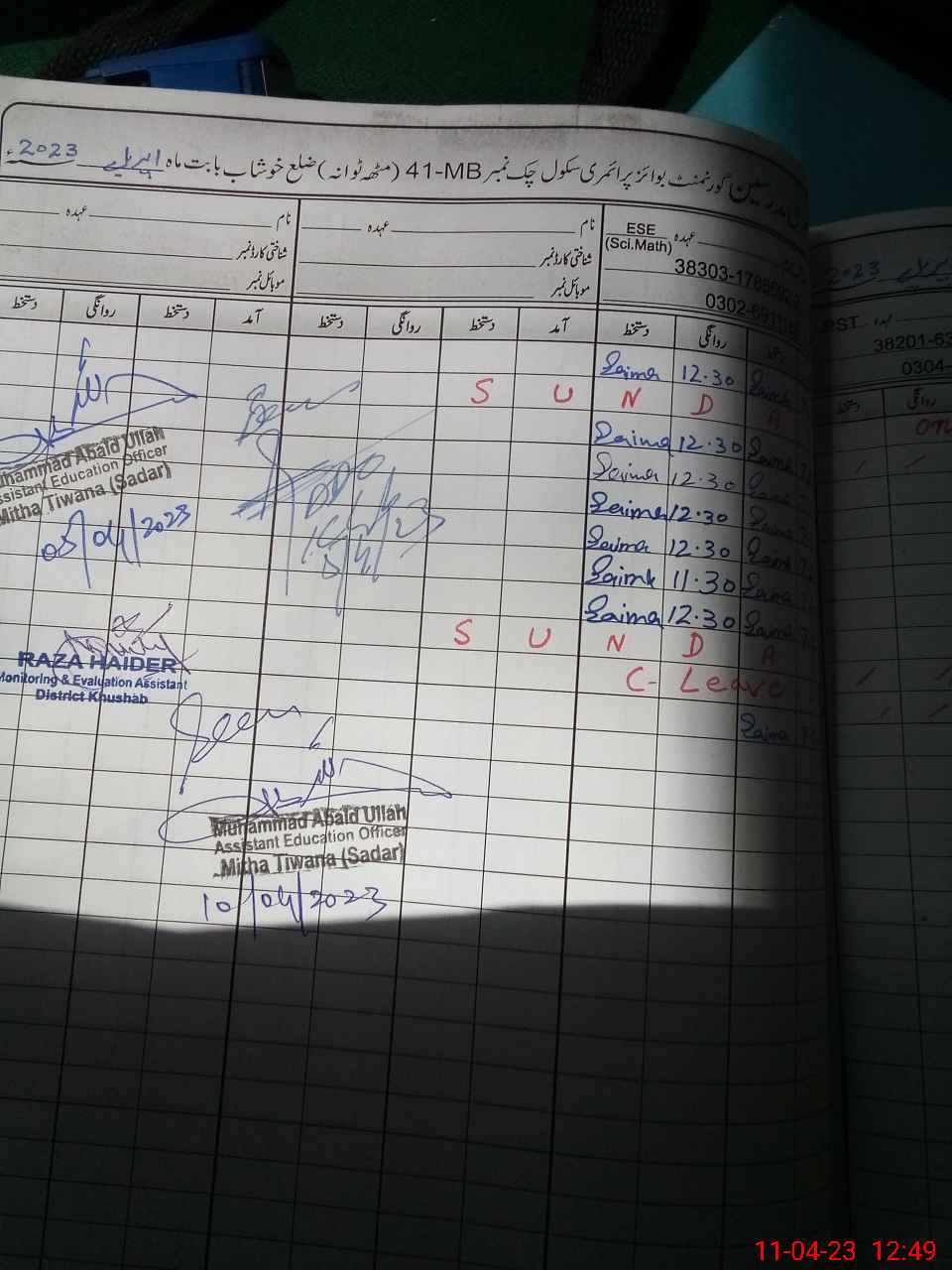 | Name: GH**** Sa**** Designation: (School Headmaster's/Headmistress's) PST/PTC/JV Phone/Cell Number: 03**** |