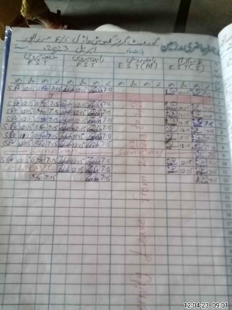 | CNIC | Full Name | Designation | R/C | Absence During Last Calender Month |