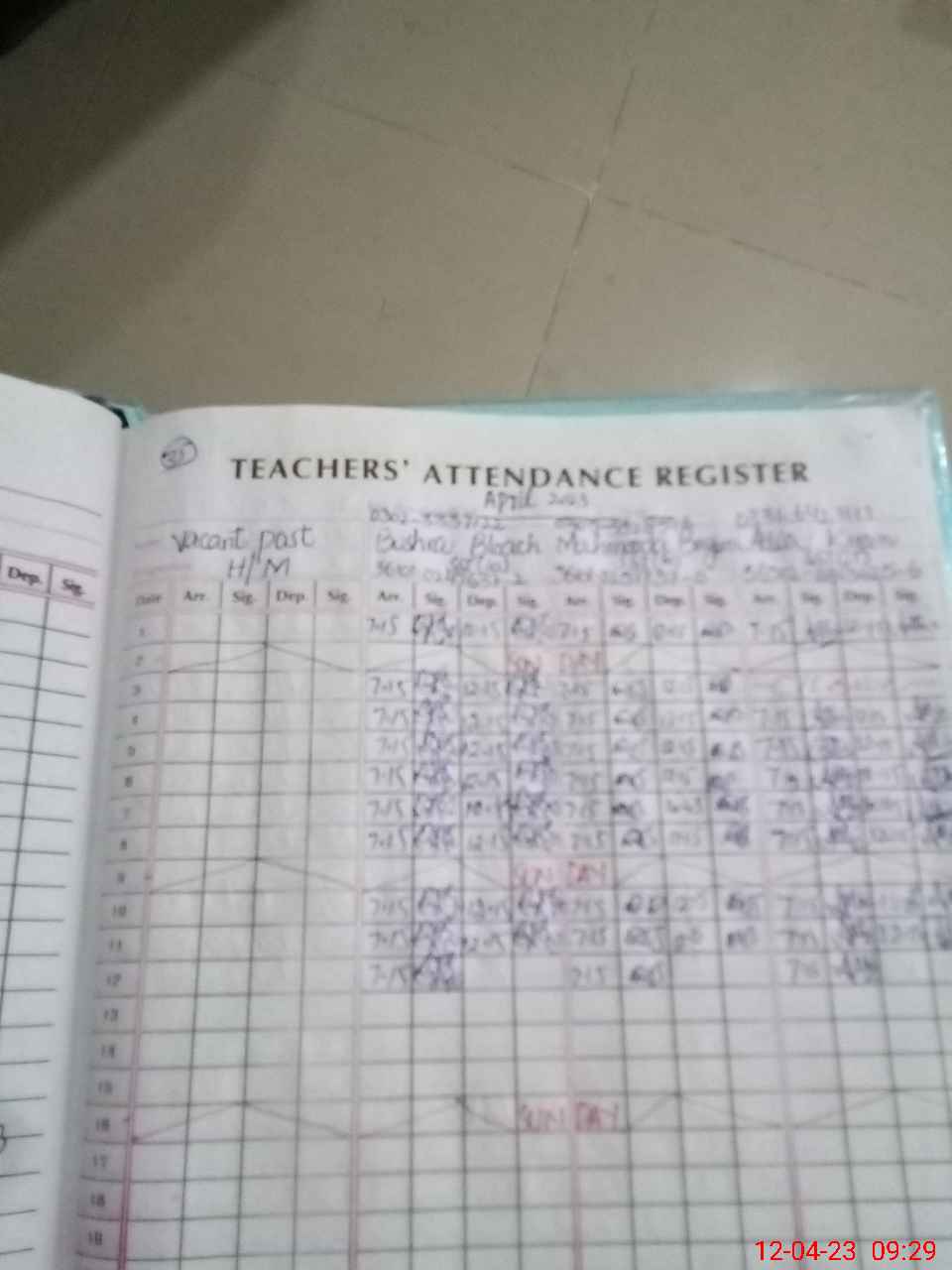| Name: Za**** Ko**** Designation: (School Headmaster's/Headmistress's) Hms Phone/Cell Number: 03**** |