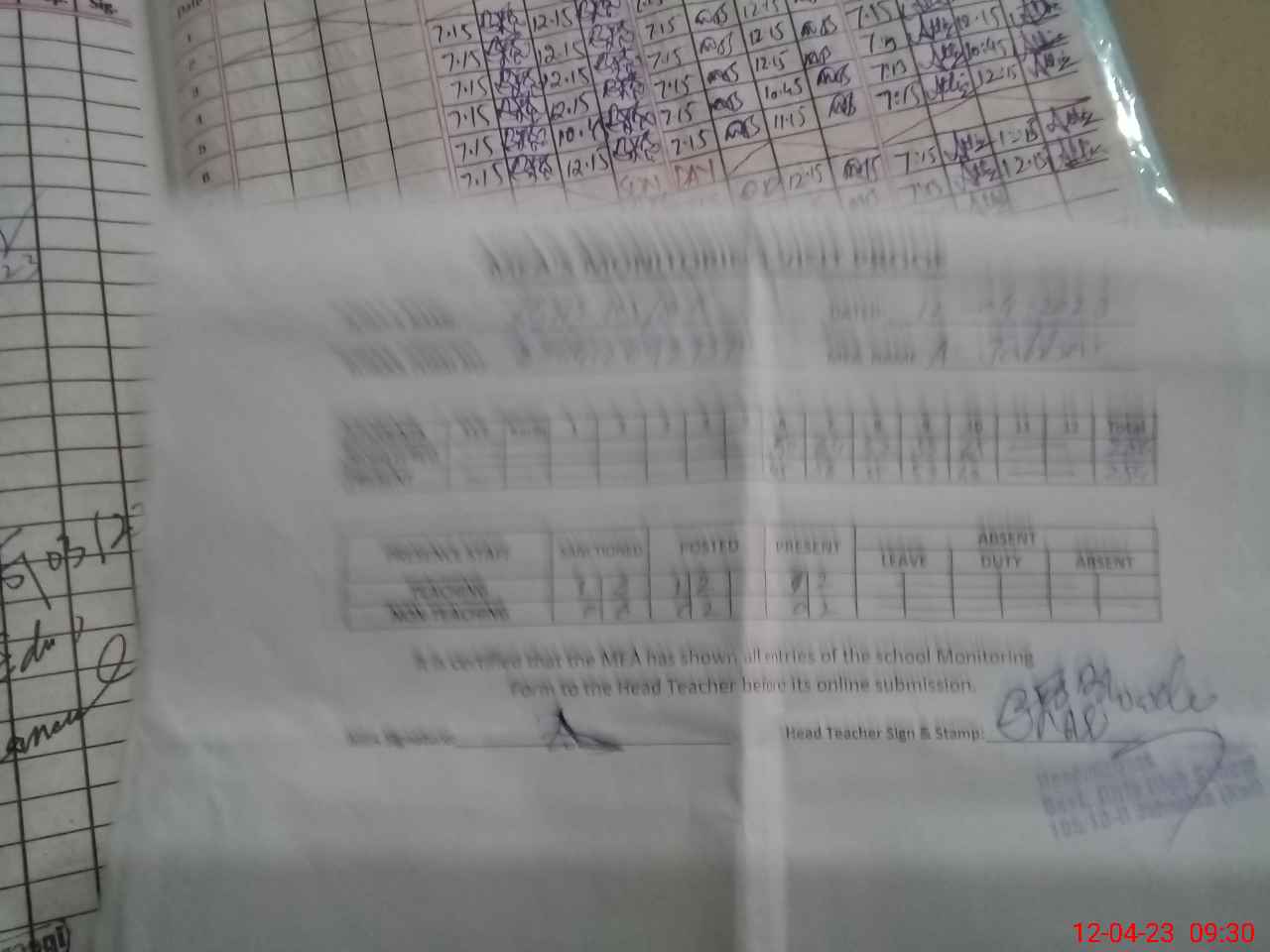 | Attendance Register | Head Teacher | MEA with School | Visit Proof |