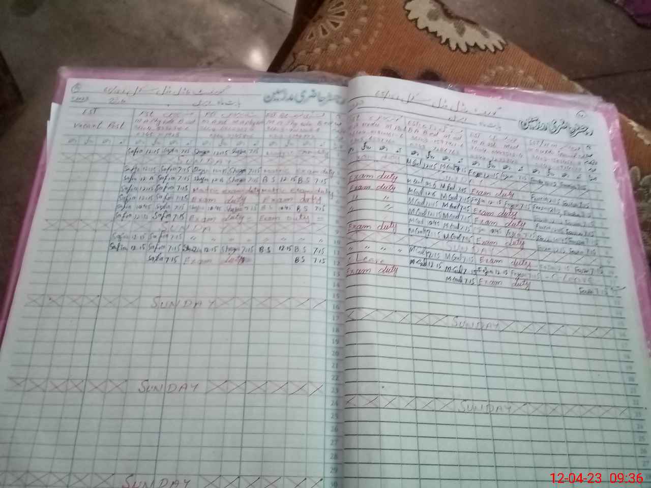 | 36**** | Sh**** Pe**** | PST | Regular | 2 | 0 | 0 | 0 | 0 | 0 | 0 | 0 | 2 | Exam Duty |