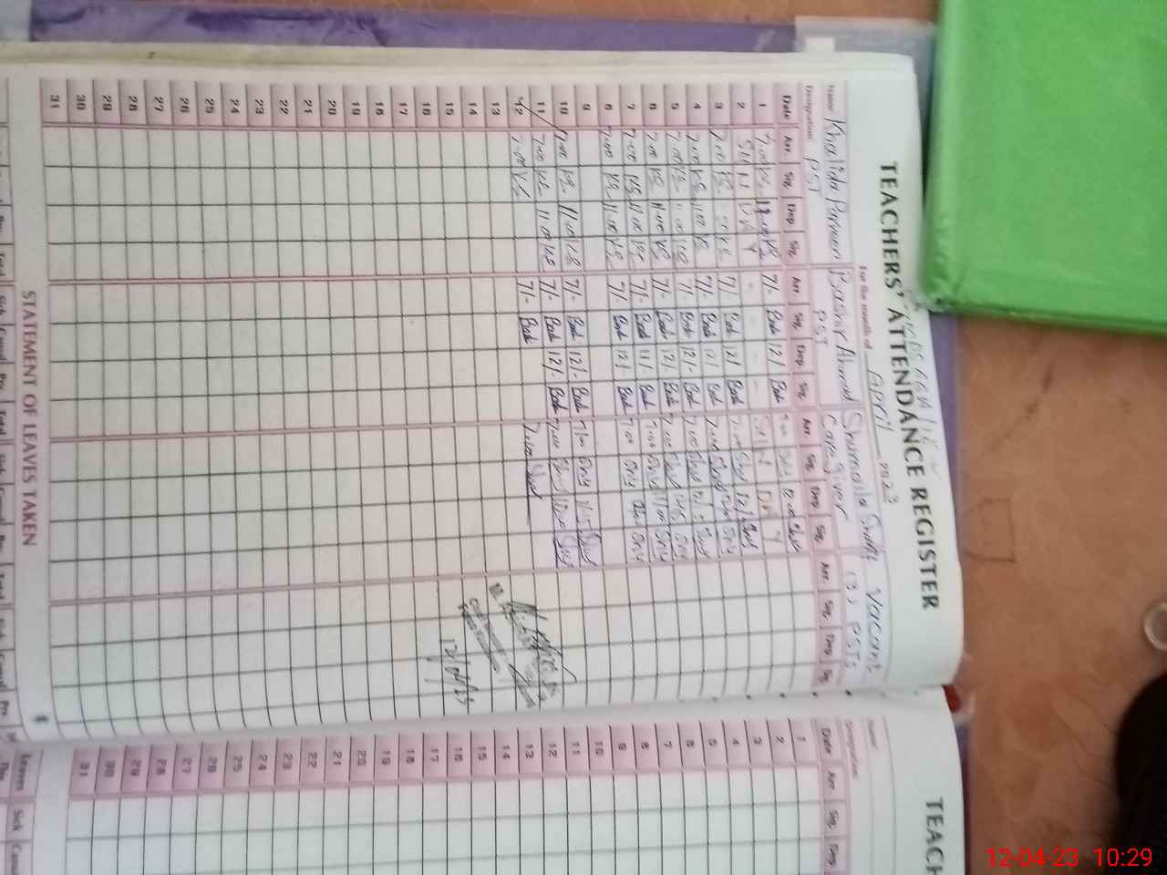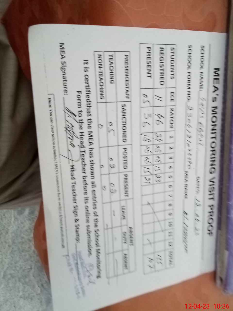 | Attendance Register | Head Teacher | MEA with School | Visit Proof |