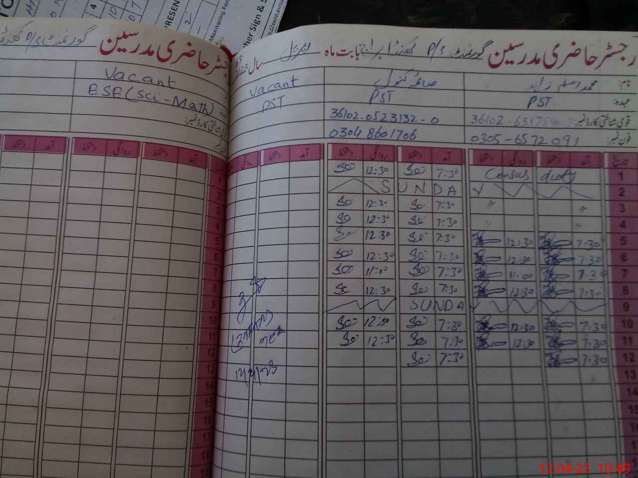 | CNIC | Full Name | Designation | R/C | Absence During Last Calender Month |